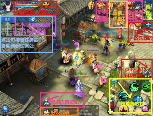 首先我們進入游戲后會對【游戲界面】產(chǎn)生陌生感,不知道該點哪里,為此,給大家做了一張圖,能夠很簡單簡介的了解游戲界面。