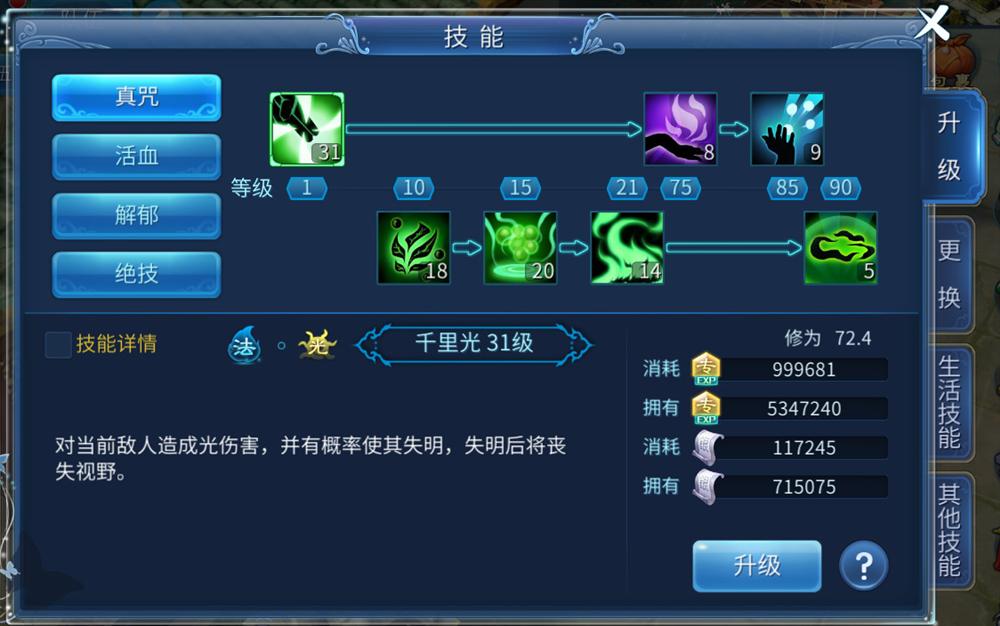 1.職業(yè)技能:對技能選擇進行升級技能。