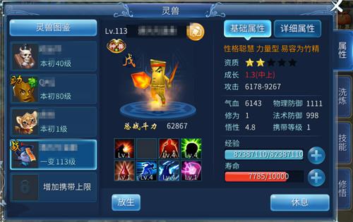 3.技能:讓靈獸學習新的技能以及技能升級。