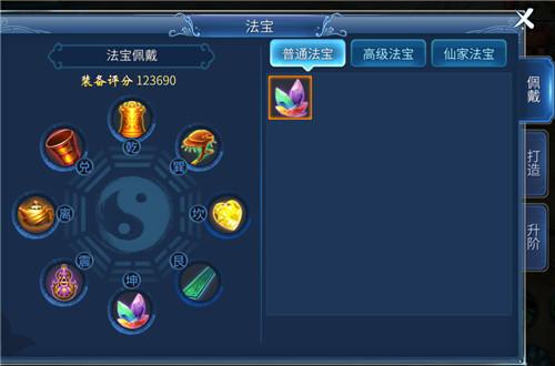 法寶系統(tǒng)就是佩戴一些法寶可以激活法寶成套裝的屬性~來提升人物的幸運值、抗性、血量等等不一樣的額外屬性。