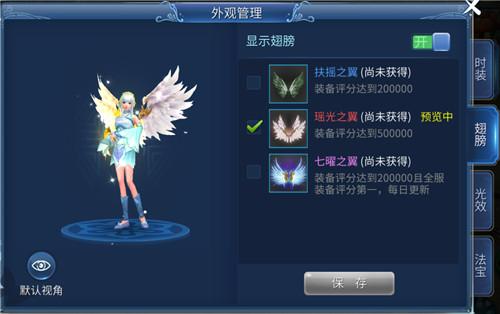 翅膀光效:裝備評分到達一定的評分可以獲得的小翅膀~愛美者必敗啊!