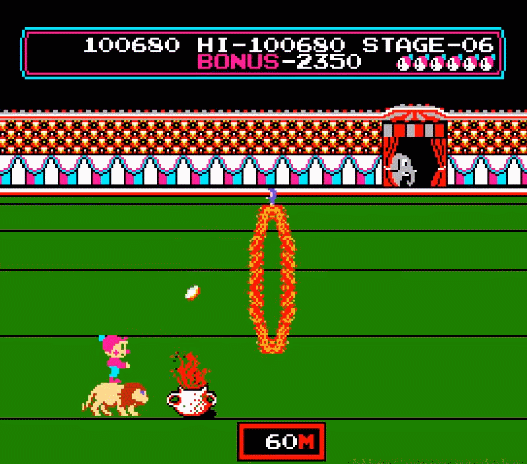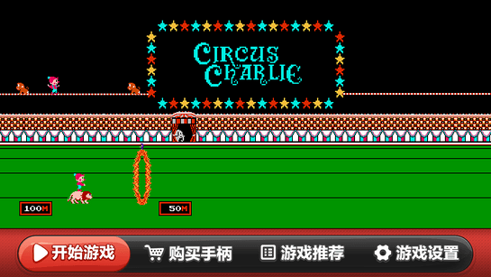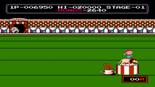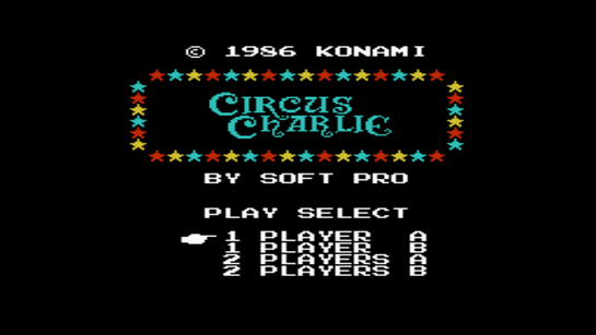 游戲的名字言簡(jiǎn)意賅,就叫《馬戲團(tuán)》或《小丑查理》,但是實(shí)際上英文標(biāo)題《Circus charlie》則使用的是主人公的本名,也就是小丑查理。這個(gè)長(zhǎng)相可愛(ài)又身手矯健的查理堪稱(chēng)是全能型選手:馴獸、鋼絲、騎馬、跳球