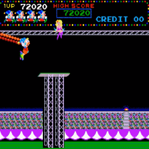 其實(shí)這也因?yàn)槭荈C移植版本的原因,在街機(jī)版的《馬戲團(tuán)》中,杰尼就坐在最后的平臺(tái)高點(diǎn)等著查理,表演結(jié)束之后會(huì)用一個(gè)大大的香吻來(lái)嘉獎(jiǎng)查理,然后兩人就幸福的生活在一起......在電影中未能達(dá)成的完美結(jié)局,在游戲中終于是實(shí)現(xiàn)了。