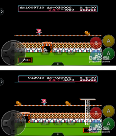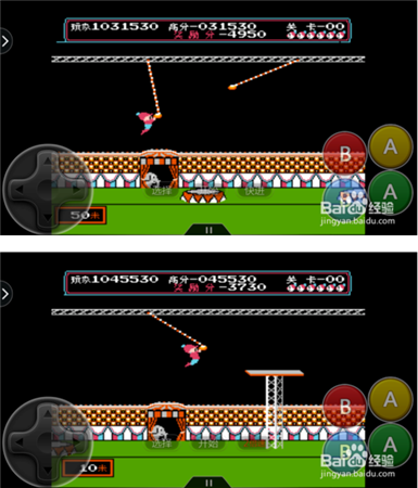 第五關(guān):最后一關(guān)難度還算比較大的,可以只跳繩索(注意兩個(gè)繩索中間的距離,要有耐心),或者踩下面的床,然后一個(gè)一個(gè)往過(guò)挪。