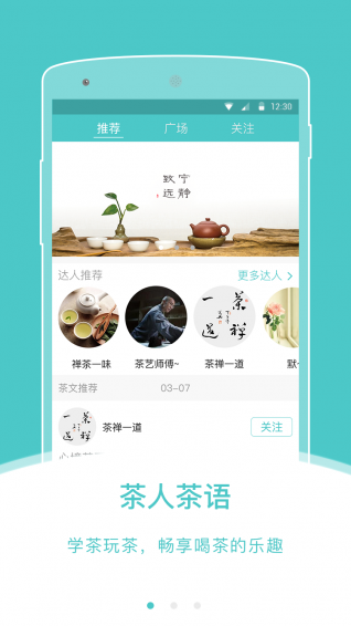 3.UI革新,為了獲得更好的用戶體驗,這一版本中我們將沏茶版塊與首頁內(nèi)容版塊相互打通,泡茶的同時還能瀏覽他人的茶語生活,學(xué)習(xí)茶知識,兩全其美,何樂不為。