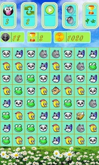 點擊選取兩個相近的圖片(觸屏托動也行)進行交換,交換后如有三個以上相同圖片則清除,否則還原之前狀態(tài),清除后圖片下移,如有三個以上相同自動清除(得分加倍),每次手動清除加時間,每過一關(guān)加時間道具. 時間為0提示保存,保存后可在排行榜查詢(刪除),每次點擊音樂圖標(biāo)依次對背景,音效進行開關(guān)操作。【更新日志】
