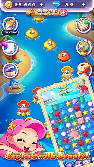 1、新穎的消除玩法2、萌幻的海底世界