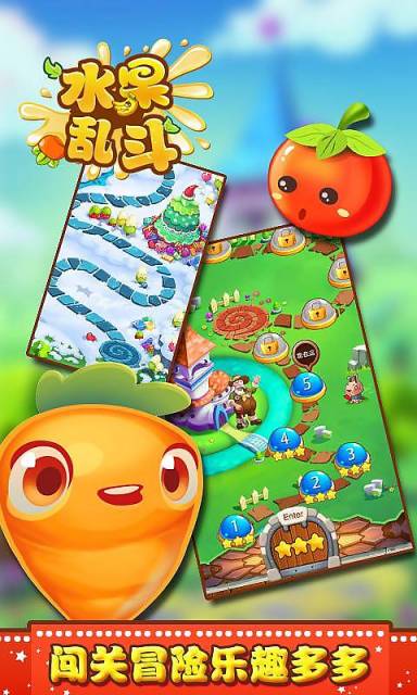 水果亂斗是一款休閑好玩的消除類游戲。該游戲玩法非常簡(jiǎn)單,玩家需要用手指將相鄰的相同顏色水果相連接,從而一次性消除,消除的個(gè)數(shù)越多,分?jǐn)?shù)也就越高。