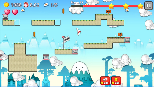 跳跳世界破解版是一款休閑好玩的動(dòng)作類(lèi)游戲。該游戲中有許多的陷阱和障礙物可以阻止小兔子的前進(jìn),而玩家的純?cè)诰褪菫榱藥椭⊥米釉竭^(guò)這些重重障礙物,順利到達(dá)終點(diǎn)。