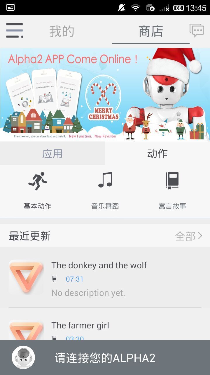 Alpha2 app是專為操控阿爾法2機(jī)器人打造的應(yīng)用,能隨時(shí)和機(jī)器人交互,隨時(shí)控制你的機(jī)器人進(jìn)行各項(xiàng)指令動(dòng)作,如:跳舞、唱歌、講故事、閑聊,同聲翻譯等功能.【更新日志】
