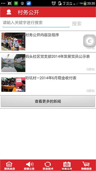 村務(wù)公開,提供各個鄉(xiāng)村發(fā)布村務(wù)的公共平臺;