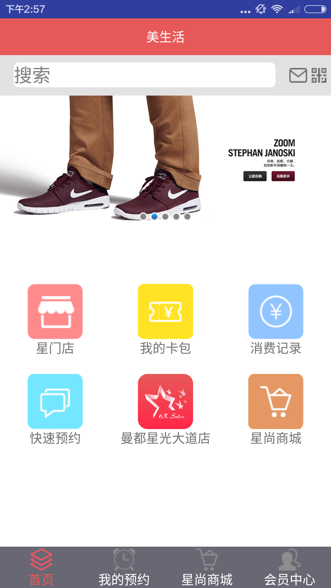 星沙龍美生活app,它面向的是廣大的消費(fèi)者。消費(fèi)者可以在app上查詢(xún)門(mén)店、查看自己的卡券、查找設(shè)計(jì)師,并直接發(fā)起預(yù)約;消費(fèi)者還可以在app上進(jìn)入美生活商城,利用門(mén)店贈(zèng)送的美生活積分換購(gòu)心儀的商品或用支付寶等支付工具直接夠買(mǎi)。