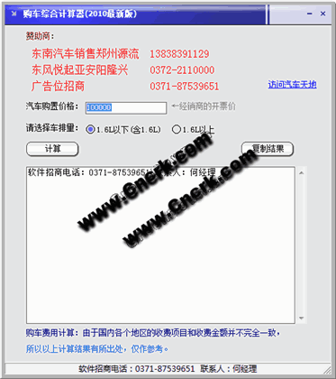 購(gòu)車計(jì)算器: 采用2010年最新的購(gòu)車稅和保險(xiǎn)費(fèi)用,給你購(gòu)車提供詳細(xì)的參考依據(jù)。