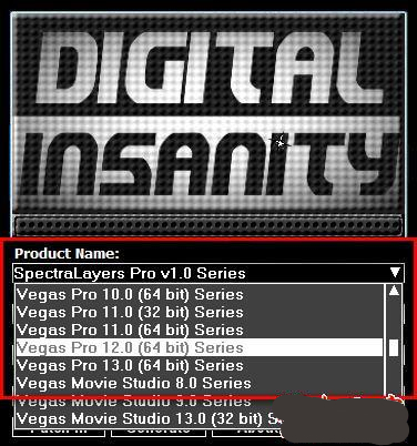 11.再打開下載文件中的注冊機(jī)”Keygen.exe“。雙擊運(yùn)行。在最上面”product Name“下選擇”Vegas pro 13.0“如下圖