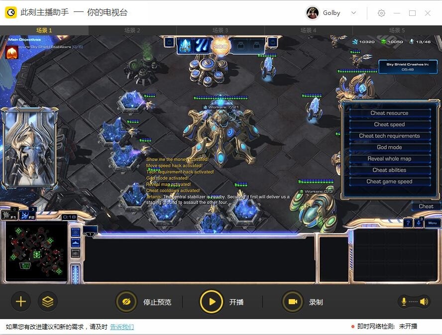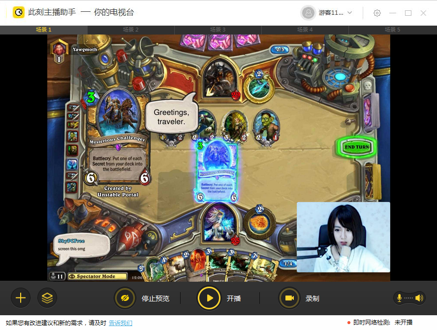 場景:相當(dāng)于PS的作圖,場景是主圖,直播源是圖層。你可以多設(shè)置幾種不同的場景畫面,在直播中自由切換,