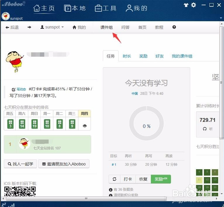 首先,我們要先在課件組中去下載自己想要學(xué)習(xí)的課件。如圖,在個(gè)人主頁(yè)點(diǎn)擊【課件組】。