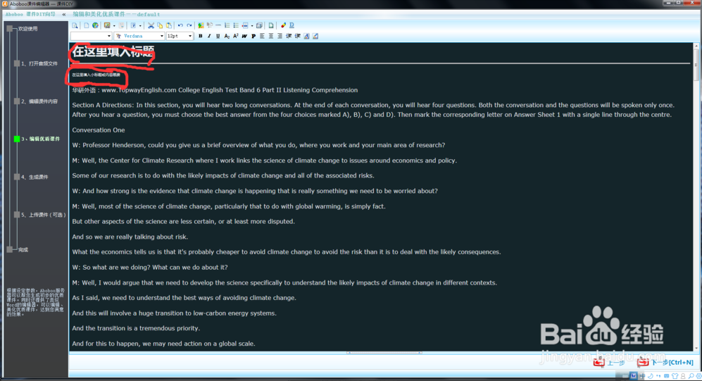 第四步,填寫(xiě)課件相關(guān)信息,并自動(dòng)保存。