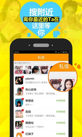 同城約美女是為單身男性打造的女多男少的婚戀社交產(chǎn)品.隨時(shí)隨地發(fā)現(xiàn)同城的單身男女,一鍵打招呼功能,方便快捷;高級(jí)搜索同城、老鄉(xiāng)、職業(yè)、學(xué)歷,快速精確找到最適合你的緣分, 當(dāng)你因?yàn)槊τ诠ぷ鬟€是單身的時(shí)候,同城約美女幫你隨時(shí)隨地發(fā)現(xiàn)身邊適合你的人當(dāng)你長(zhǎng)夜長(zhǎng)夜漫漫無心睡眠的時(shí)候,同城約美女這里有跟你一樣寂寞的她陪你聊天當(dāng)你逢年過節(jié)被親人問婚姻的時(shí)候,同城約美女可以快速幫你3天找到生命的有緣人。【軟件特點(diǎn)】