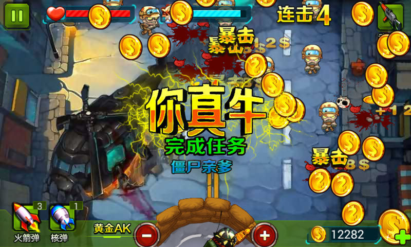 十大戰(zhàn)役場景,上百張戰(zhàn)斗地圖,還有超緊張刺激的boss模式;十幾種不同武器供你選擇,黃金AK給你帶來超舒爽的戰(zhàn)斗刺激感,還有超級(jí)炸彈輔助你保衛(wèi)世界,給你帶來不同的戰(zhàn)斗體驗(yàn),肯定讓你戰(zhàn)斗到high起來