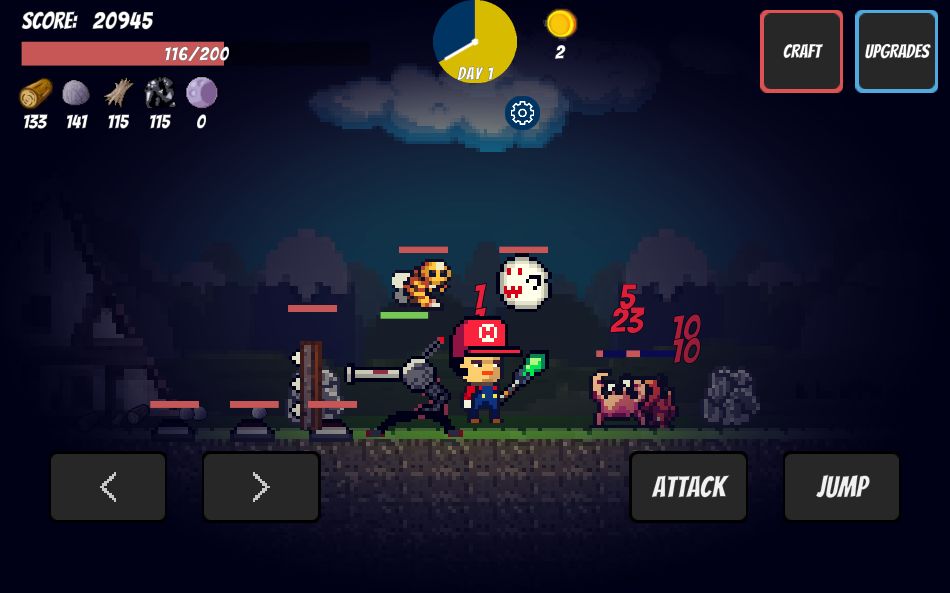 你要劈柴,挖礦,起防御低檔怪獸。你的世界夜晚一到,就是惡夢(mèng)的開始。你可以生存得幾多個(gè)晚上呢?在游戲里也可以通過撿到的金幣抽取新奇小寶物。【游戲特色】