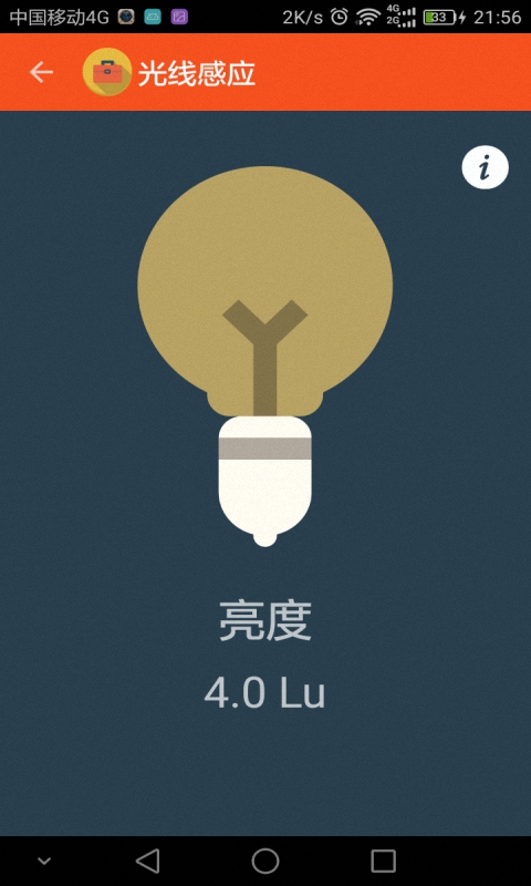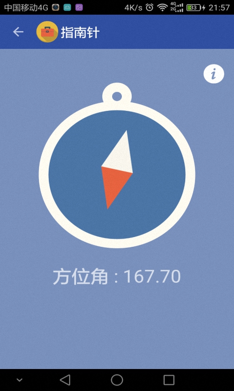 -光線傳感器正常情況下你的手機將會根據(jù)這個傳感器來調(diào)節(jié)屏幕亮度。使用此工具即可獲得環(huán)境光線亮度的數(shù)值。-指南針傳感器使用加速傳感器和磁場傳感器來檢測方位。