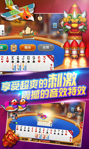 ★玩法齊全:經(jīng)典場(chǎng),癩子場(chǎng),比賽場(chǎng),玩出花樣,玩出激情!★獎(jiǎng)品豐富:玩牌開(kāi)寶箱,登錄送抽獎(jiǎng),話費(fèi),ipad和手機(jī)獎(jiǎng)勵(lì)等你拿!