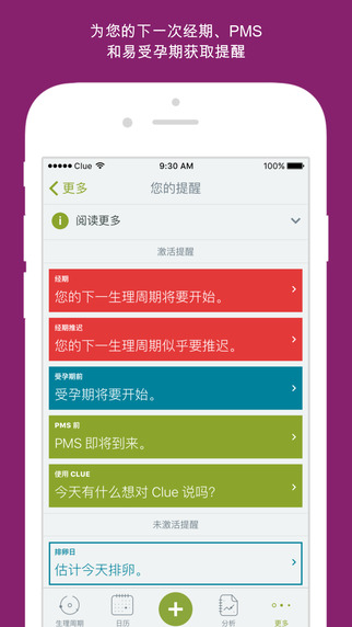+了解您的下一次經(jīng)期開始時(shí)間+ 獲得您下一次經(jīng)期、PMS和易受孕時(shí)段的提醒-在您的 iOS 設(shè)備和Apple Watch上均可使用。