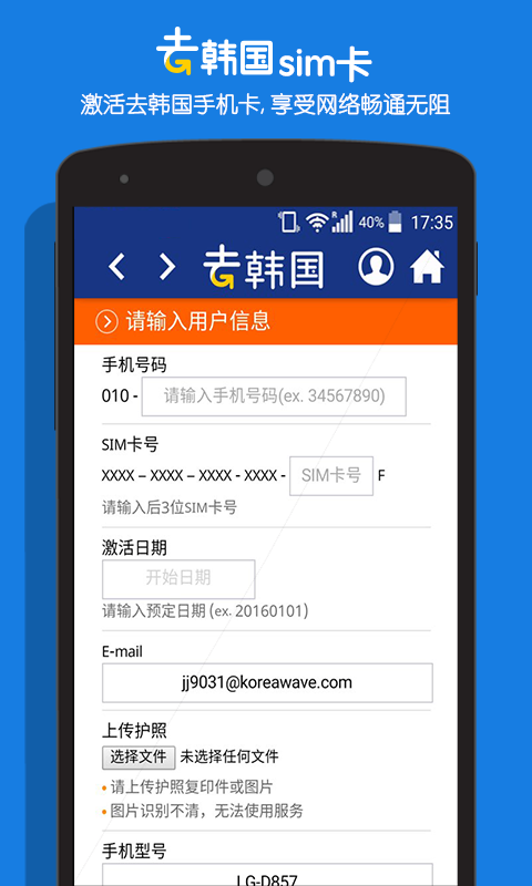 去韓國(guó)-您暢游韓國(guó)的隨身武器!專門為來韓的中國(guó)游客們激活去韓國(guó)手機(jī)卡時(shí)用的APP。