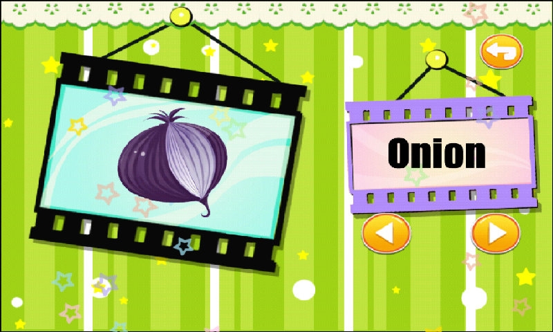 1、游戲中包含了十多種常見(jiàn)蔬菜的卡通形象和真實(shí)照片,點(diǎn)擊旁邊的小喇叭會(huì)播放蔬菜的中文發(fā)音。點(diǎn)擊左右按鈕更換動(dòng)物。2、采用寓教于樂(lè)的教育方式,讓孩子在快樂(lè)的游戲中認(rèn)識(shí)各種蔬菜,通過(guò)反復(fù)的游戲加深寶寶的對(duì)蔬菜的認(rèn)知。