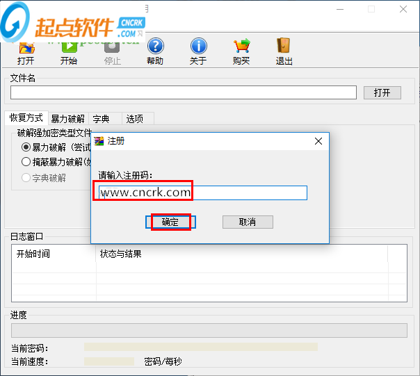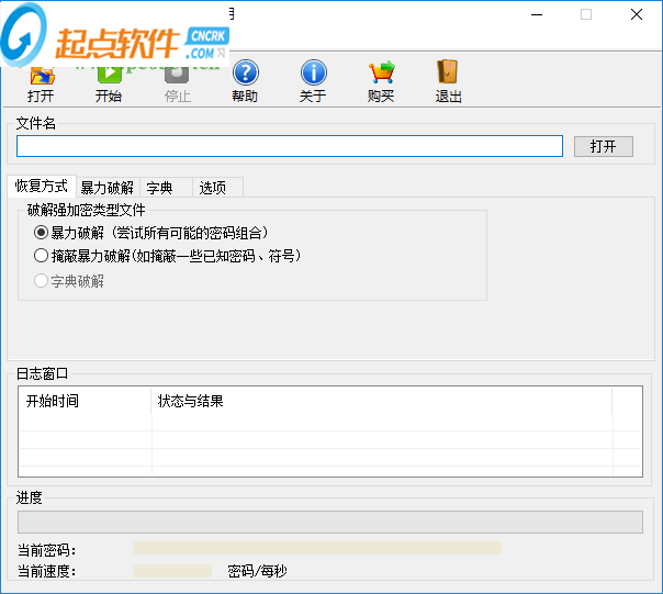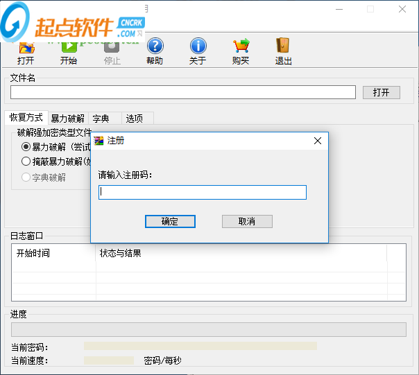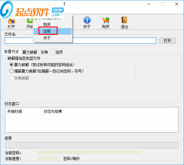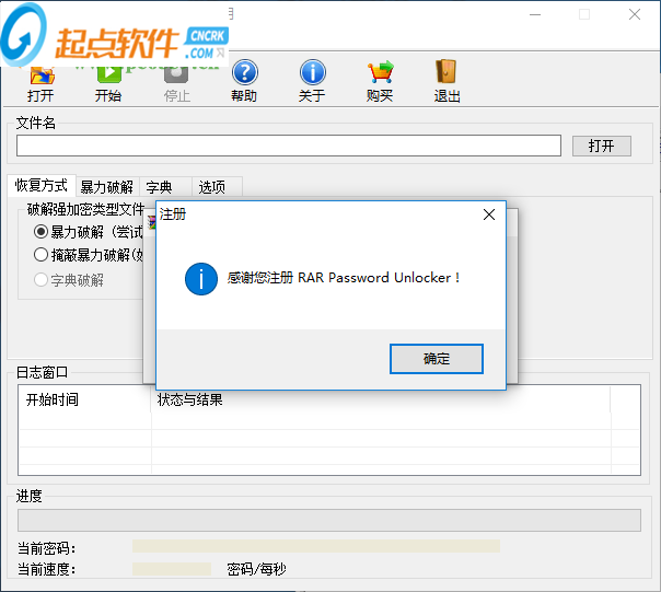 7、如圖,我們返回RAR Password Unlocker的主界面,此時(shí)即可未注冊版,用戶可以直接進(jìn)行使用。