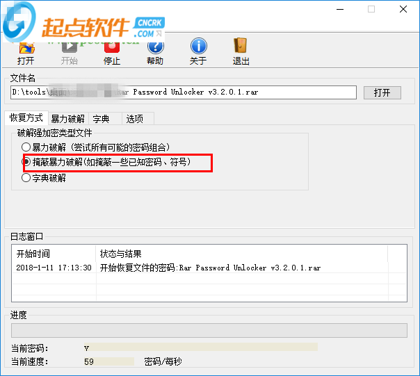 5、用戶可以在下方查看當(dāng)前的進(jìn)度,對于完全沒有密碼的rar文件來說,需要的時(shí)間可能會相當(dāng)長,請用戶耐心等待。