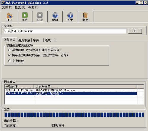 RAR密碼破解軟件是一個(gè)簡單、易用、功能強(qiáng)勁的WinRAR/rar密碼破解工具。RAR Password Unlocker支持所有版本的WinRAR/RAR壓縮文件,不管WinRAR /RAR的密碼有多長和多復(fù)雜,它都可以恢復(fù)。它通過暴力破解、帶掩碼的暴力破解和字典破解三種模式來加強(qiáng)對 WinRAR 壓縮文件密碼的恢復(fù),并且可以根據(jù)實(shí)際使用的需要對字典進(jìn)行定制,工作迅速并且富有成效。此外,它是一個(gè)有史以來最容易使用的密碼破解程序,甚至是一個(gè)新用戶都可以在不到一分鐘的時(shí)間內(nèi)將其完全掌握。