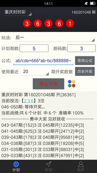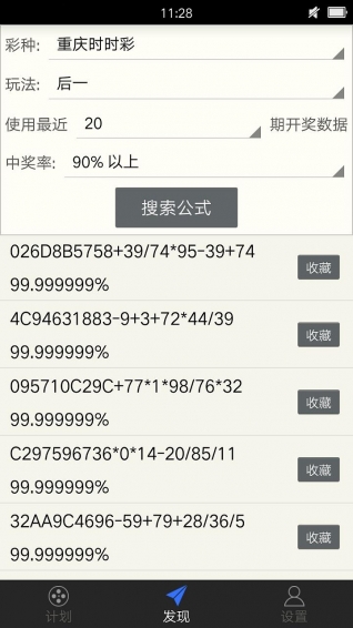 軟件可以按不同的玩法一鍵獲得高命中率計劃,也可以對公式進行搜索、收藏、過濾制作自己的計劃。