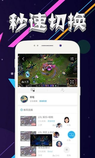 1.游戲直播全聚合,斗魚、戰(zhàn)旗、龍珠、虎牙、熊貓、觸手6大平臺(tái),上百種游戲,上萬(wàn)直播,一應(yīng)聚全。2.多個(gè)直播秒速切換,讓您同時(shí)觀看多個(gè)主播的精彩內(nèi)容。