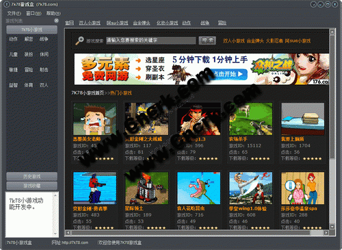 7K78小游戲盒是由7K78小游戲開發(fā)的,基于網(wǎng)頁FLASH小游戲的操作軟件。7K78小游戲盒力做全球最專業(yè)小游戲操作軟件。您可以使用7K78小游戲盒能夠在線玩FLASH小游戲、雙人小游戲,可下載,也可玩本地及其他網(wǎng)頁的FLASH小游戲…… 功能全面、操作流暢、完全免費,7K78小游戲盒是網(wǎng)民喜愛的裝機(jī)必備軟件。
