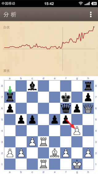 3.分析系統(tǒng),應(yīng)用世界排名領(lǐng)先的stockfish6引擎,一步步為你分析,助你進(jìn)步。
