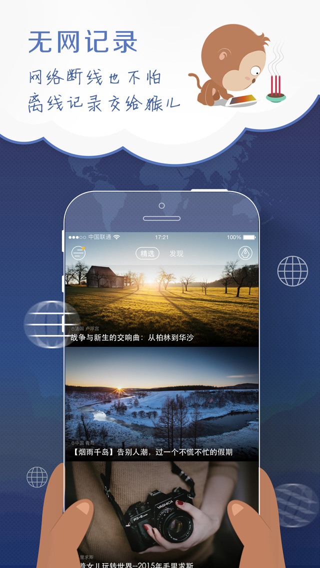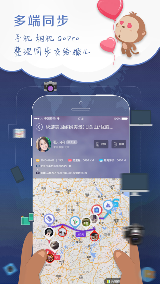 4、貼心體驗:無網(wǎng)記錄功能讓您的行程記錄永不斷線;多端同步可使所拍美圖可自動智能匹配至出行軌跡,方便您隨時隨地編寫游記。