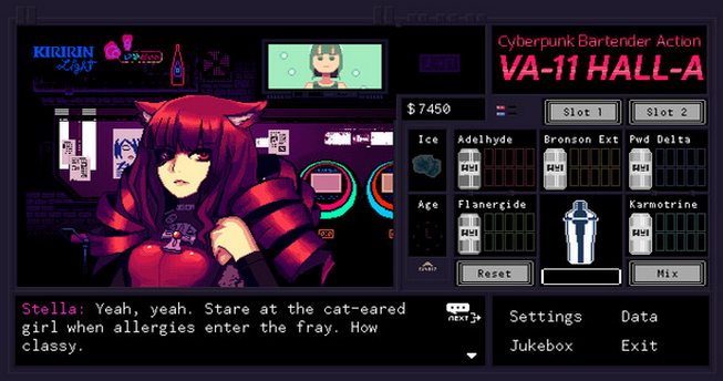 你想不想成為一名調(diào)酒師,那么就快來《VA-11 HALL-A》體驗(yàn)吧!《VA-11 HALL-A》是Sukeban Games公司所制作的一款模擬經(jīng)營(yíng)游戲,游戲中玩家將體驗(yàn)各種大都市的夜生活,但是在體驗(yàn)激情四射的舞臺(tái)時(shí)需要保證自己的工作效率!在你做這份工作的時(shí)候,你同時(shí)也必須滿足基本條件。【配置要求】