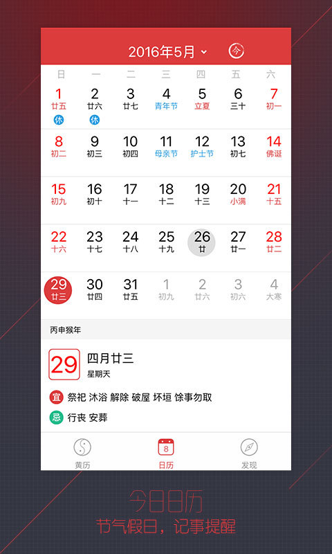 24節(jié)氣健康養(yǎng)生貼士、節(jié)假日提醒、農(nóng)歷查詢、日歷記事、行程備忘,一應(yīng)俱全!