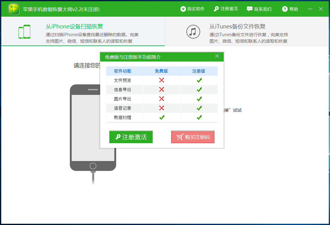 互盾蘋果手機數(shù)據(jù)恢復(fù)大師是一款蘋果手機數(shù)據(jù)的恢復(fù)工具。它使用簡單,容易上手,并且可支持單個文件和多個文件的恢復(fù),有了它,媽媽再也不用擔(dān)心的我不小心刪數(shù)據(jù)啦。