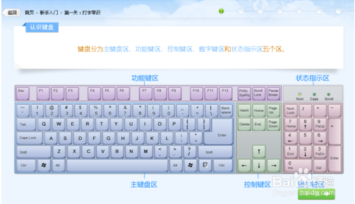 4、進來之后,會發(fā)現(xiàn)很多方式供你練習,不過在第一個下面倒也有提示,“從這里開始”,那我們就點擊這個吧,這里會教你認識鍵盤區(qū),了解的就不用看了,直接跳過