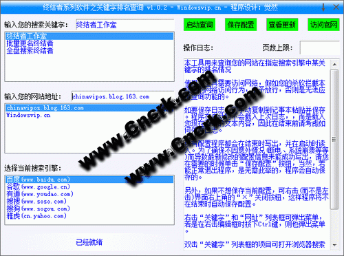 本工具用來(lái)查詢您的網(wǎng)站在指定搜索引擎中某關(guān)鍵字的排名情況