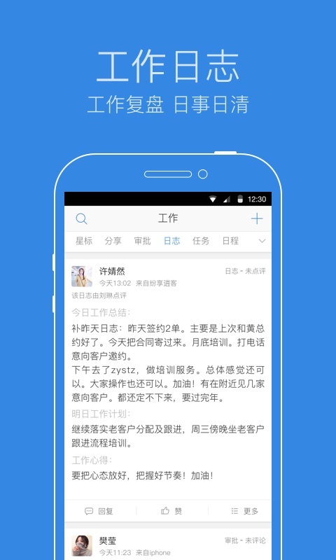 那么,紛享逍客App具體是如何幫助管理者管理企業(yè),了解運(yùn)營的呢?首先,對于管理者對于一線銷售情況的了解需求上,紛享逍客App設(shè)有的紛享的日志,員工可將自己的具體銷售情況和實(shí)際工作總結(jié)的經(jīng)驗(yàn)以及遇到的困難通過日志編寫的形式上傳到APP中,管理者就可以通過紛享逍客App及時(shí)了解一線員工的各種工作動態(tài),及時(shí)了解員工在市場上面做的怎么樣,碰到了哪些問題,及時(shí)作出調(diào)整。而且員工也可以在日志下邊去進(jìn)行跟帖回復(fù),形成討論交流。這樣做的好處就在于,上層領(lǐng)導(dǎo)和一線員工有了一個(gè)可以直接對話的公開平臺,員工之間也可以隨時(shí)隨地分享工作經(jīng)驗(yàn),更加有利于團(tuán)隊(duì)的養(yǎng)成。另外通過分享的CRM功能,管理者用戶能夠?qū)崟r(shí)看到下邊員工對客戶的跟進(jìn)紀(jì)錄,哪些地方做的好,哪些地方是薄弱環(huán)節(jié)一目了然,方便管理者去及時(shí)指導(dǎo),或者作出調(diào)整。這個(gè)過程對于員工來說也是一個(gè)過的經(jīng)驗(yàn)與技能的過程!