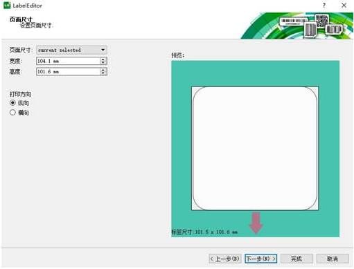 5、點(diǎn)擊下一步后,設(shè)置頁面尺寸和打印方向,如下圖所示: