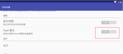 3、打開(kāi)管理器后,點(diǎn)擊應(yīng)用設(shè)置,然后找到Root選項(xiàng),將關(guān)閉的Root模式打開(kāi)即可。