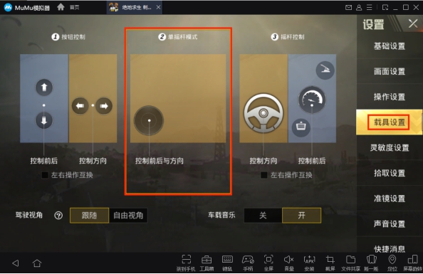 A:在游戲內(nèi)修改載具設(shè)置,選擇【單搖桿模式】即可。