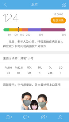 (3)空氣質(zhì)量實時報告:包含PM2.5、PM10等六項污染物,關(guān)注空氣質(zhì)量,關(guān)愛你的健康;