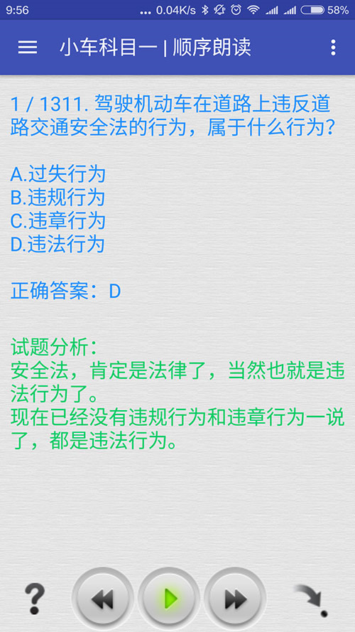 5、科目四理論考試(安全文明駕駛常識(shí),科目三路考后的考試):1121題;