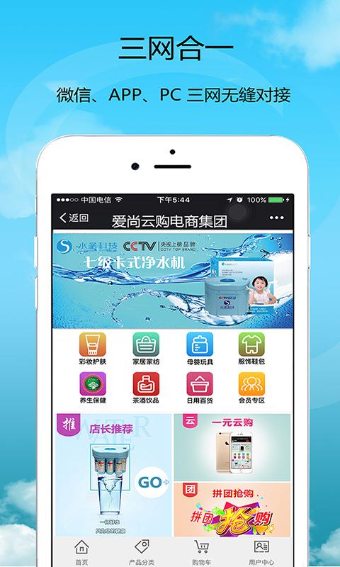 愛尚云購app是一款在線購物平臺應用。它是愛尚云峰科技公司旗下的移動商城,采用微信、APP、PC等客戶端為一體,三網(wǎng)合一,一鍵分銷,價廉又物美。