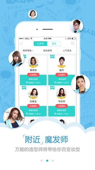 平臺嚴格考核篩選幾百名專業(yè)化妝造型師,手機一鍵預(yù)約,安全可靠、服務(wù)貼心,隨時隨地,為您提供上門化妝造型服務(wù),是您身邊最貼心的化妝造型師。-全球上門化妝造型第一服務(wù)平臺